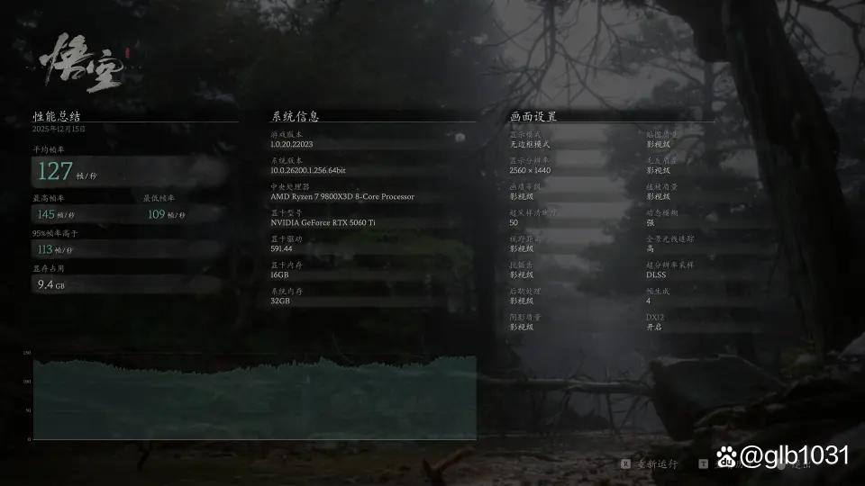 「黑神话:悟空」游戏在2K分辨率下,开启全景光线追踪超级后超级采样率为50(性能)的情况下,开启DLSS 4后游戏平均帧数127 FPS,最低帧数109 FPS。