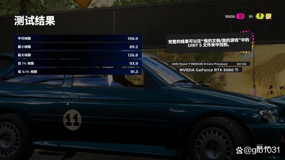 「尘埃5」游戏2K分辨率,预设超高画质下,同时开启光线追踪车辆阴影游戏平均帧数106.9 FPS,最低帧89.2 FPS。