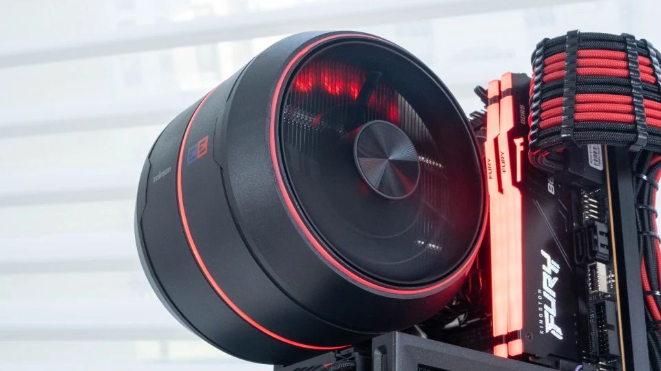 这次客制化的ITX主机除了显卡,可能最吸引玩家的就是这个打破玩家固有的方形散热观点,突破性地采用了类似飞机航空发动机的设计,圆形的zalman思民ZET5 散热器。