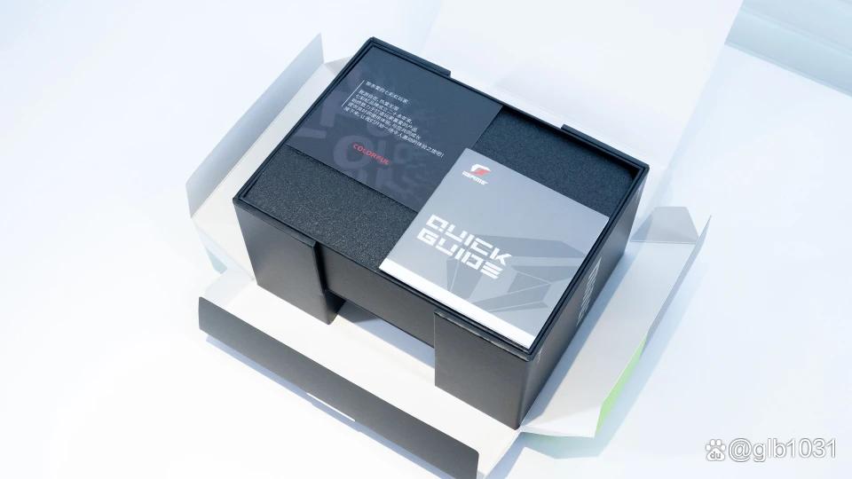 打开可以看到这次的iGame RTX 5060 Ti Mini 显卡了,这次的iGame RTX 50的MINI系列采用工业风进行设计,相较于前代产品所采用的白色、银色系设计语言,本次采用了具有鲜明工业美学特征的经典硬朗风格。该设计风格通过强化几何线条与材质质感的表现力,呈现出更具力量感与专业性的视觉形象。