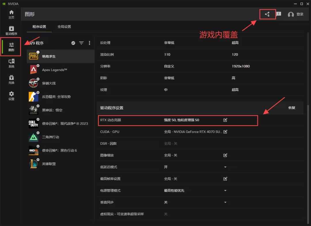 2)DLSS Override:把游戏里过时的 DLSS一键换新
