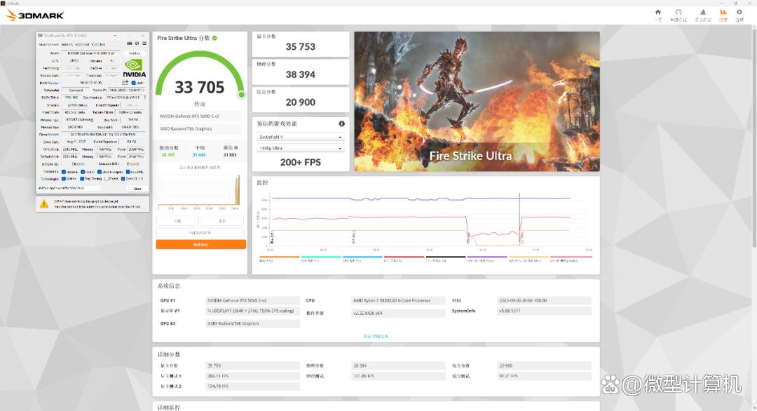 在多次尝试之后,我们最终将耕升GeForce RTX 5090 D v2追风OC的核心Boost稳定到了2780MHz,较默认频率高出328MHz。同时,在这样的状态下该显卡成功完成了3DMARK FireStrike Ultra的测试,并且得到了35753分,较超频前的33418分高出7%,就此我们认为耕升GeForce RTX 5090 D v2追风OC是一款拥有不错性能空间的显卡。当然,为了显卡的稳定性与耐用性,我们并不建议大家对其进行超频。