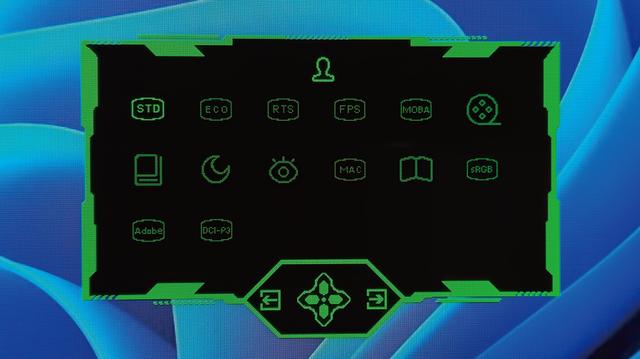 向右拨动五维导航键,能快速进入“情景模式”。针对有游戏需求的用户,该模式预设有FPS、MOBA和RTS/RPG共3个游戏模式,还有标准、电影、阅读、夜晚、sRGB、Adobe RGB、DCI-P3、ECO 、护眼、E-Book和Mac View模式。