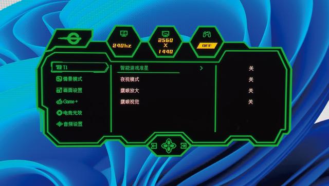 夜视模式是通过提升对比度的方式让暗部场景变得更加明亮,同时原本正常亮度的场景也不会出现过曝,它提供了2种等级与2种自动等级可选。鹰眼放大功能则犹如放大镜一般,可以将显示器中心(准星位置)区域放大,并且支持在显示器四个角不同位置显示。这种可调节显示位置的设计很方便,它比我们此前体验过的其他显示器只能显示在最中央能更好地观察,因为放大区域和常规区域会有一个过渡点,容易对画面产生干扰。在开启了鹰眼放大后,像我这种菜鸟在玩《绝地求生:大逃杀》游戏时犹如神助,可以达到90%以上的命中率。值得注意的是,鹰眼放大功能在首次使用显示器时可能会呈灰色状态无法开启,只需将显示器恢复至出厂状态后即可正常使用。至于鹰眼视觉功能,它的作用是提升游戏部分暗部场景的亮度,便于及时发现躲藏的敌人。开启该功能后,屏幕上会有一小块视窗区域的亮度高于其他区域,同时也可以对这块视窗的大小、位置以及亮度进行调整。在开启了鹰眼视觉后,鹰眼放大功能会自动关闭。