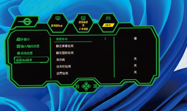 如果自己花大价钱买台OLED显示器出现了“烧屏”岂不是很亏?其实这个问题现在基本不用担心,每个厂商都通过一些技术来降低“烧屏”风险。比如泰坦军团G27W8S在进入菜单后位于最下方的选项有一个“OLED保养”功能。在该功能界面,我们可以看到它有“像素移动”“静态屏幕检测”“静态图标检测”“低功耗”“任务栏检测”“边界检测”“面板保养”“保护通知”“OLED Care模式”以及“重置OLED保养”共10项功能,其中前7项功能用于降低“烧屏”风险。像“像素移动”以特定间隔将画面移动数个像素,防止残影,像素移动一般情况下人眼几乎察觉不出来,不会影响使用。