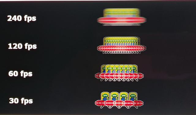 ▲该显示器支持240Hz超高刷新率,可以看到运动中的UFO在240Hz下运动的轨迹连贯性更高。