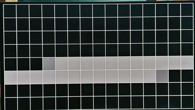 ▲借助专业测试图像,将相机快门设置为1/10秒后对准屏幕拍照,灰色方块图像连续运动了24个小方格且没有出现跳帧的现象,同时也说明该显示器是真实的240Hz刷新率。