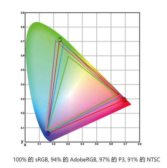 接近100%的DCI-P3色域覆盖面积
