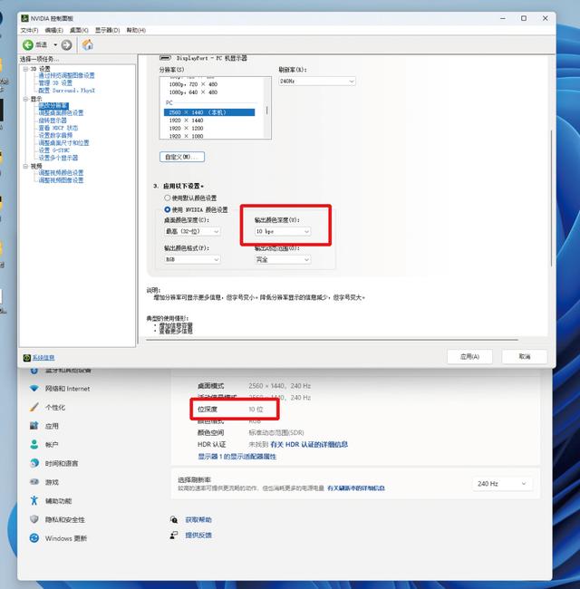 泰坦军团G27W8S采用原生10bit色位深度的QD-OLED面板,需要注意的是,显示器默认是以8bit色深显示。通过NVIDIA驱动控制面板的“更改分辨率-使用NVIDIA颜色设置-输出颜色深度”可以手动将其色位深度提升到10bit。更高的色深能带来更好的色彩平滑过渡,不会出现断层现象。