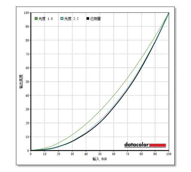 ▲测量该显示器的光度与标准光度曲线重合,说明其Gamma值调校非常准确。