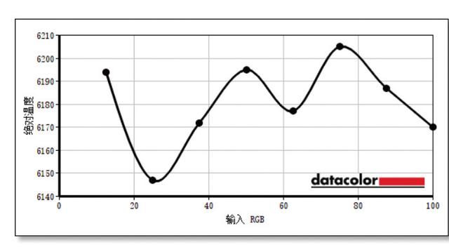 ▲该显示器的色温维持在6140K~6200K之间,接近标准的6500K数值,其色温稳定性很高。