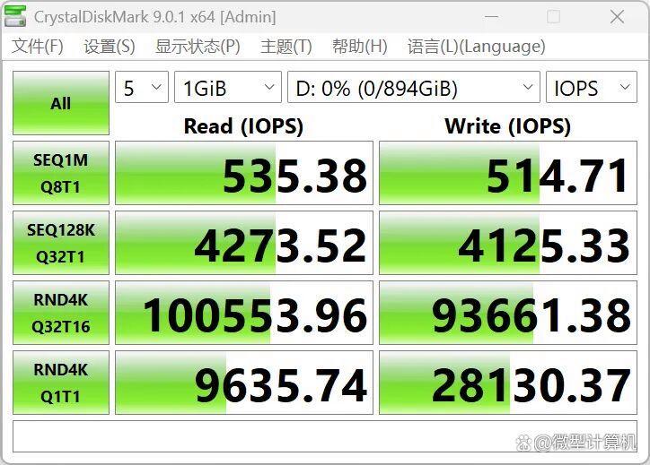 ▲以IOPS单位显示,可以看到其最高随机4K性能也达到并超越了标称规格。