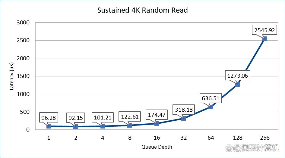 ▲在QD2下,SE006固态硬盘也能带来最低的随机读取延迟,仅92.15μs。