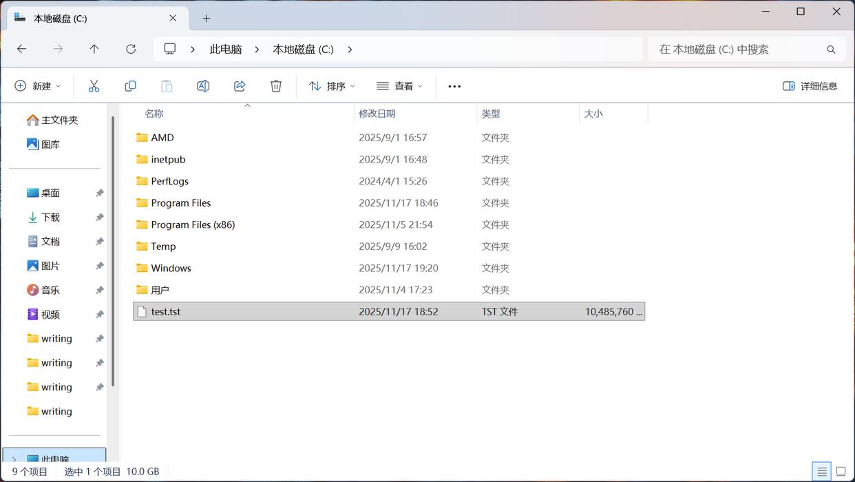 SSD就是设计用来存储和读写数据的,只要是正常的使用方式,即便是集中反复读一处数据,也不应出现数据丢失或提前损坏。下面是实测环节,我们在作为系统盘的长江存储PC41Q 1TB的根目录下,利用IOMeter创建了一个10GB大小的测试文件,并且记录下了文件的MD5校验值。