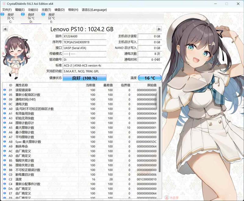 联想PS10也采用了原生主控芯片的方案,实际可用容量和致态、雷克沙一样也为953GiB,三款国产型号还真的是有点心有灵犀的感觉。