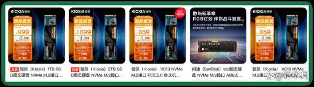 ▼不过正所谓塞翁失马,PCIe 4.0 硬盘的集体“飘高”,反而让曾经被视为高不可攀、甚至有点“性能过剩”的 PCIe 5.0 硬盘显得眉清目秀起来。就拿这次测评的铠侠EXCERIA G3 (VC10)PCIe 5.0 固态硬盘来说,1TB 版本到手价仅需999元。对比之下,这个价格甚至比不少溢价严重的 PCIe 4.0 硬盘还要亲民。