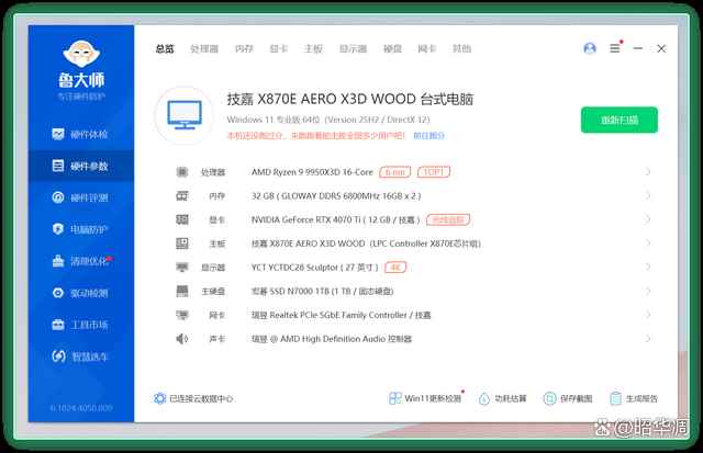 ▼首先展示本次的测试平台配置:AMD 锐龙9 9950X3D 处理器与技嘉 X870E AERO X3D WOOD 主板的强强组合,足以确保 SSD 性能的充分释放。