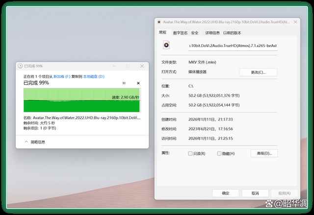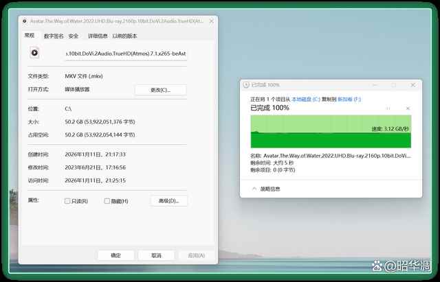 ▼我实测了一下,从一块主流的 PCIe 4.0 SSD 向铠侠 VC10 传输一个 50GB 的视频文件,VC10 的写入表现非常稳健,速度几乎保持在 3.0GB/s 以上,瞬时速度 一 度达到了 3.3GB/s,整个过程不到 15 秒即可完成