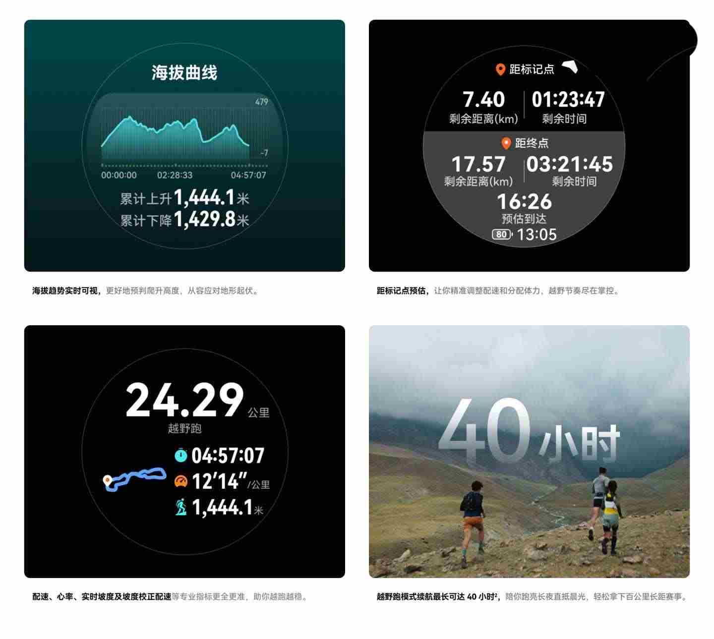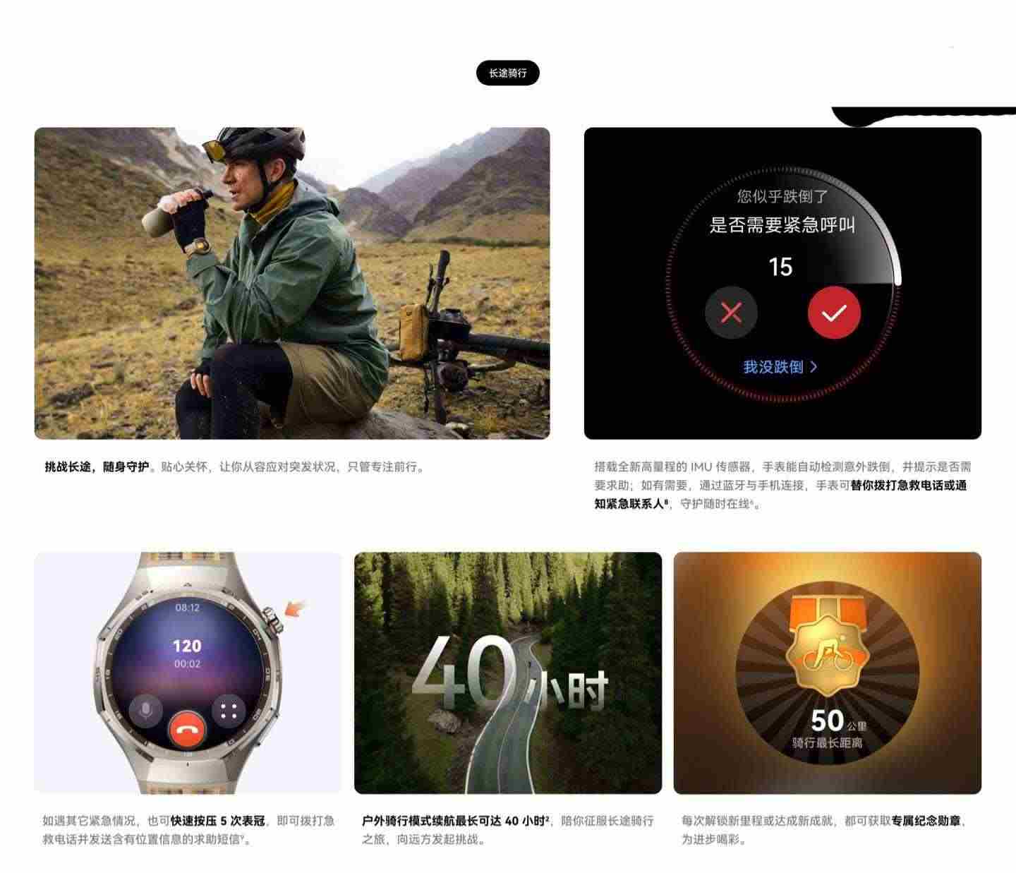 全系机型搭载全新的向日葵定位系统,官方称可提供更可靠的配速、距离和海拔数据。四种户外运动模式(骑行、越野跑、高尔夫、滑雪)也得到增强,并新增虚拟功率计功能。搭载全新高量程 IMU 传感器,手表能自动检测意外跌倒,并提示是否需要求助;如有需要,将通过蓝牙与手机连接,手表替你拨打急救电话或通知紧急联系人。