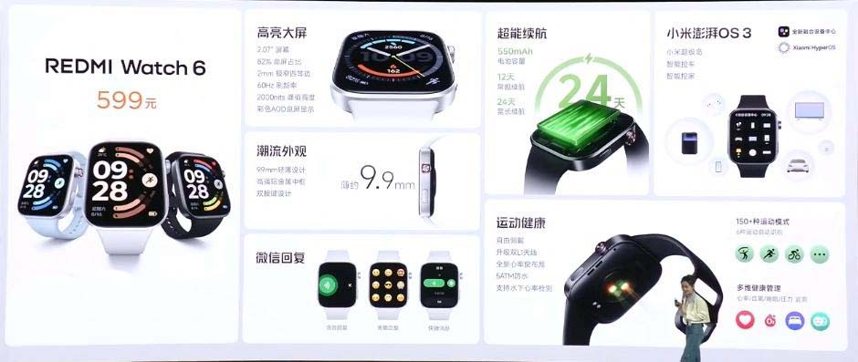 极窄大屏+24天超长续航,售价599元! 小米 REDMI Watch 6 智能手表发布