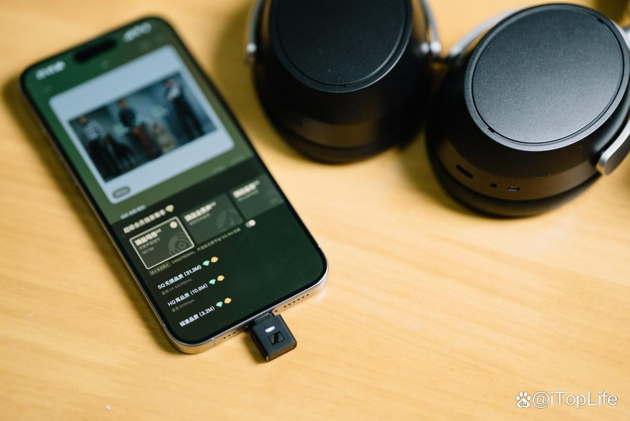 森海塞尔BTD 700的用法非常简单,插上设备,打开耳机,在没有任何额外的操作下即可完成配对。整个过程类似于将3.5mm音频接口插上设备那般自然。并且这样的体验在任何平台上都是一样的。例如在Windows中,BTD 700就会自动出现在音频选项中,同样,iOS和MacOS在插上BTD 700之后就会自动切换到与耳机的无线连接。