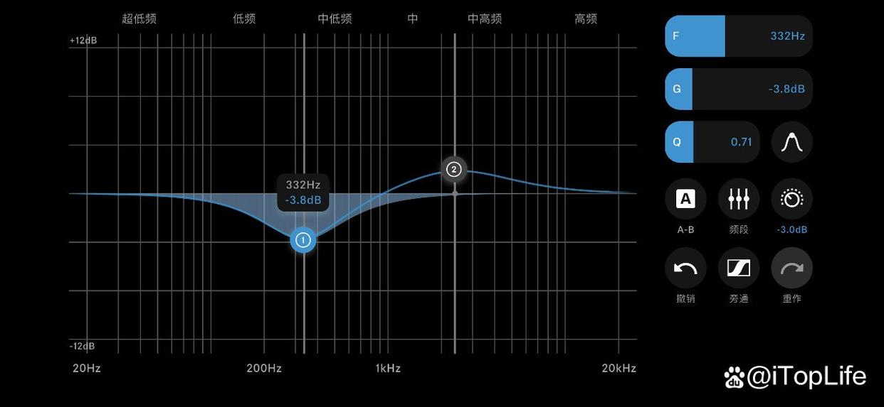 细心的同学已经发现,森海塞尔HDB 630也并非使用原本的配套应用Smart Control,而是启用了全新的Smart Control Plus。除了前面提到的交叉馈送技术,Smart Control Plus还包含了更专业的参量均衡器,这是一套专业音频工作者更熟悉的操作界面,可以更详细的确定需要调节的具体频率范围,并对其设定高度、定义频带宽度。并且还是能选择滤波器类型,提供更细微的调整。