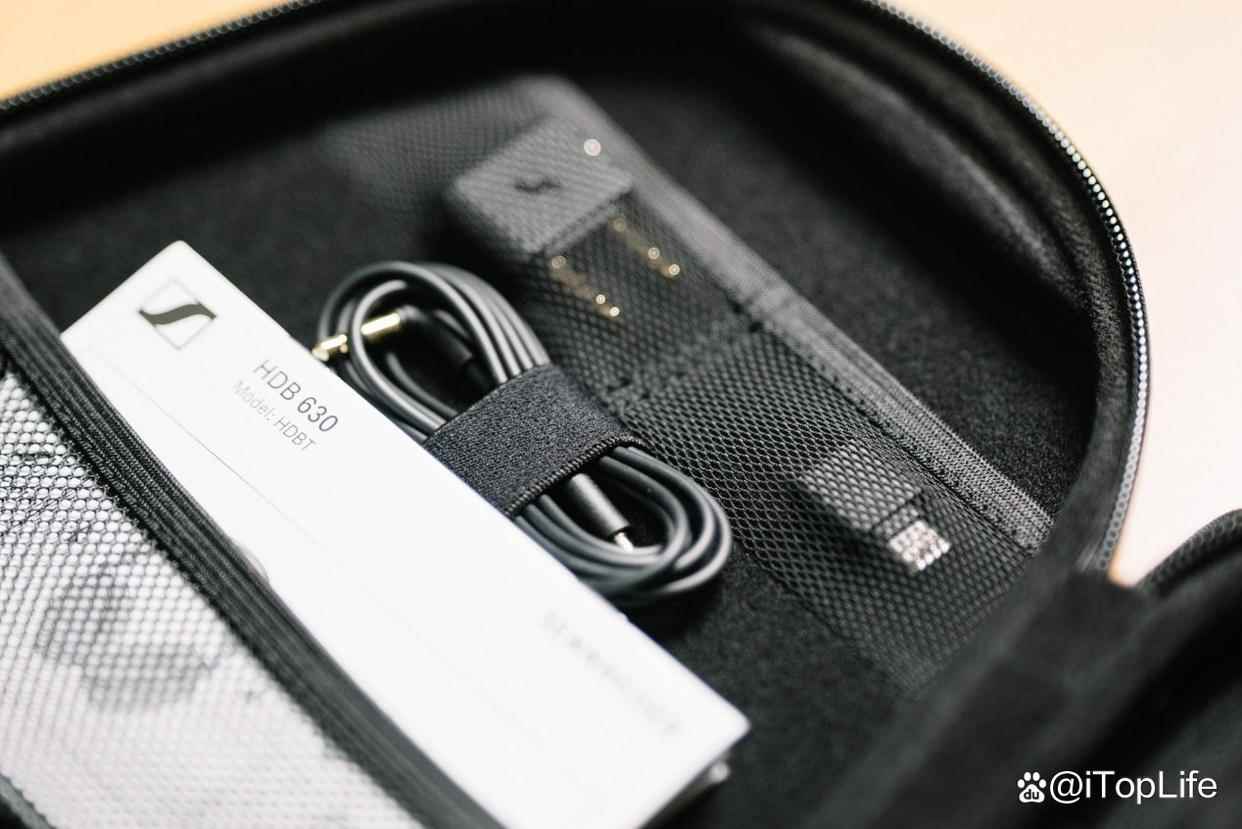 最后森海塞尔HDB 630的配套非常豪华,硬壳便携包中除了耳机本体,还提供了一条1.2m的3.5mm音频线,一条1.2m的USB-C to USB-C充电线,一个航空适配器,以及一个森海塞尔BTD 700 USB-C无线收发器。同时便携包中还留足空间,可以额外塞下护照或者机票,减少登机时双手腾不开的困扰。
