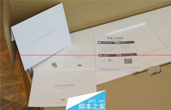 包装是小米经典的牛皮纸,说明书、指南、保修单都被转在一个信封里。拿开泡沫框,净化器还有一层布袋包裹。