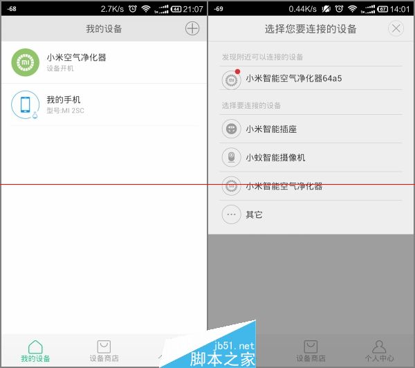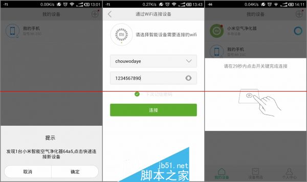 app 打开后会自动搜索附近的小米智能产品,帮净化器选择wifi并输入密码后就可以完成连接了。