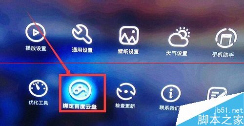 8、打开电视——电视猫——设置——绑定百度云盘。