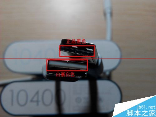 3、电源线的接线头也有猫腻,正品接线头里面是黑色,仿品为白色。如图。
