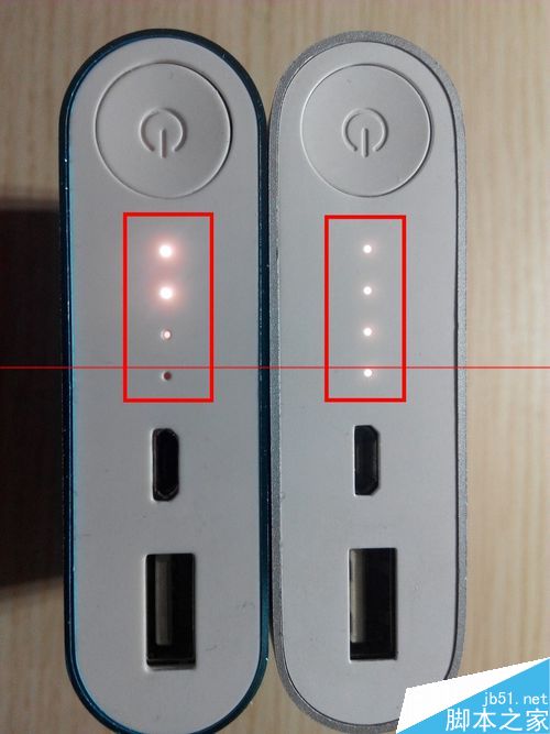 6、电源指示灯,正品小米电源中有遮光纸,所以看起来灯光柔和,均匀,而仿品灯光刺眼,明亮,没有遮光纸会有发散的感觉。