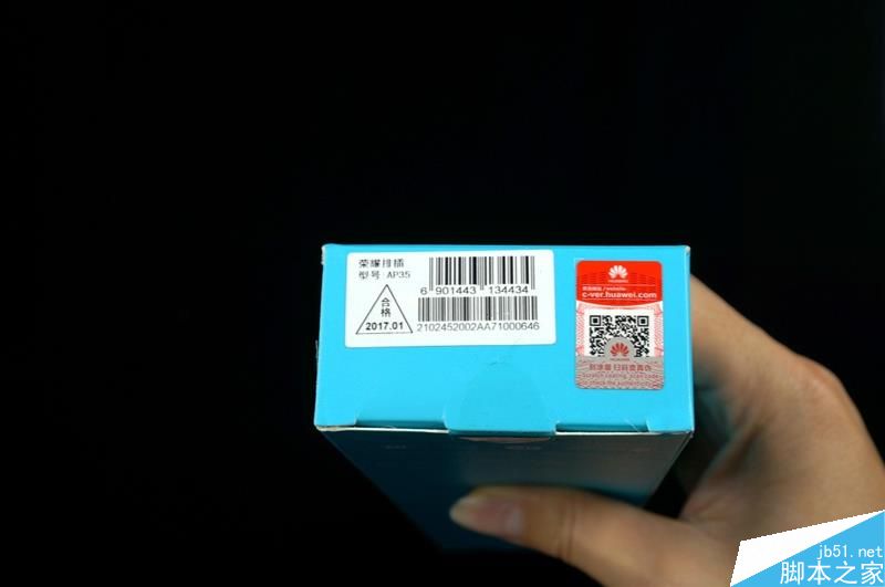 侧面开口部分带有商品二维码与用于查询真伪的防伪贴。