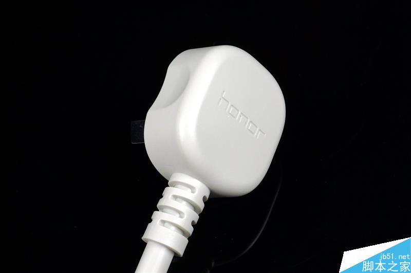 插头指捏处做了内凹处理更易于插拔,表面凹印了荣耀LOGO“honor”,线材出线口做了防弯折处理。