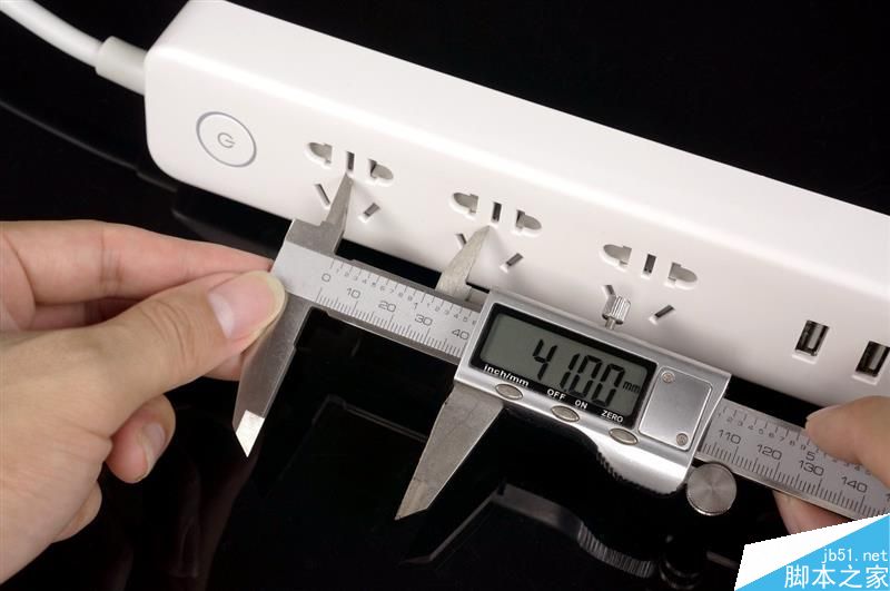 相邻的两个AC口之间距离为41mm,这间距可以让插头之间安心插入不会导致打架。
