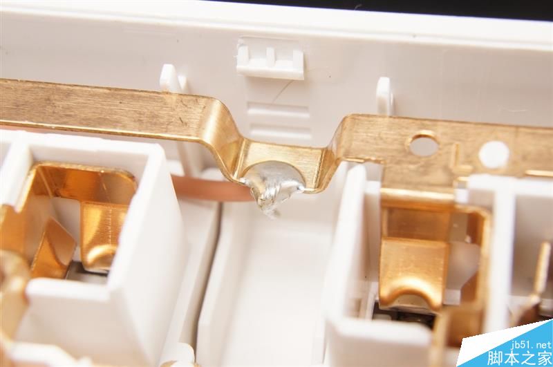 一体铜条与模块之间的连接并没有采用直接焊接,而是是焊线设计。焊点浸润度高,线头过孔弯曲再焊接,牢固度好。