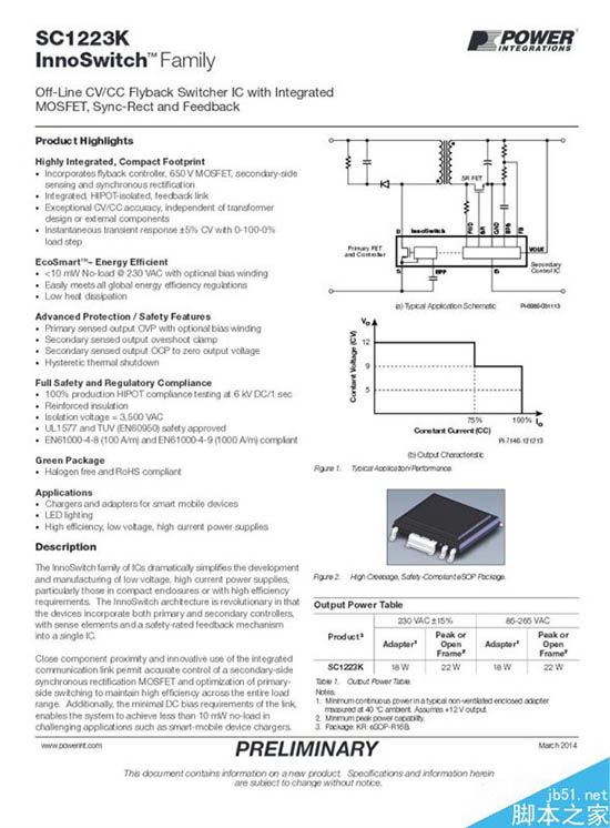 PI 的整合芯片 SC1223K,集成初级开关管、同步整流控制器、反馈电路,一颗芯片囊括几乎开关电源所有功能,十分强大的IC。