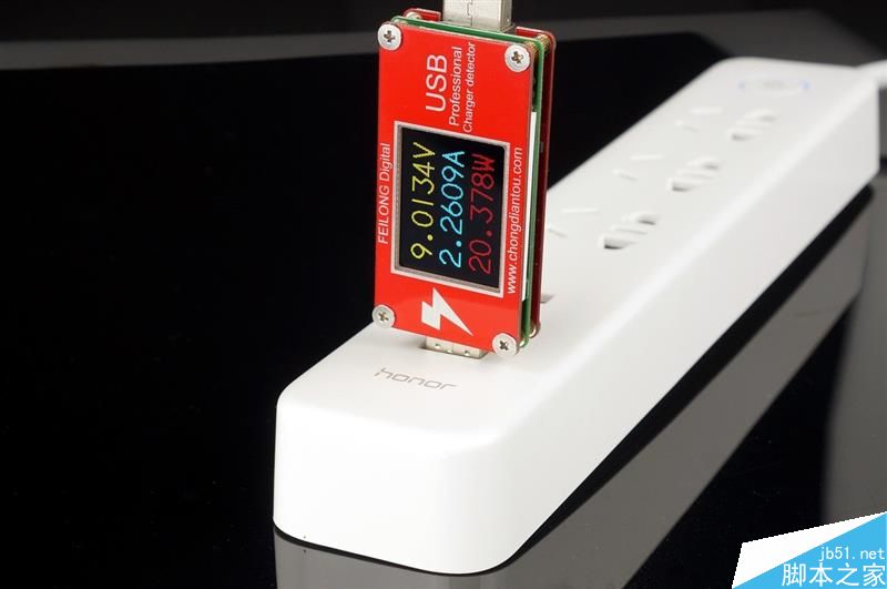 使用充电头网飞龙表监测快充口输出情况,绿色快充口可以与高通QC2.0 9V握手,最大输出9.01V2.26A,最大输出功率20.3W。