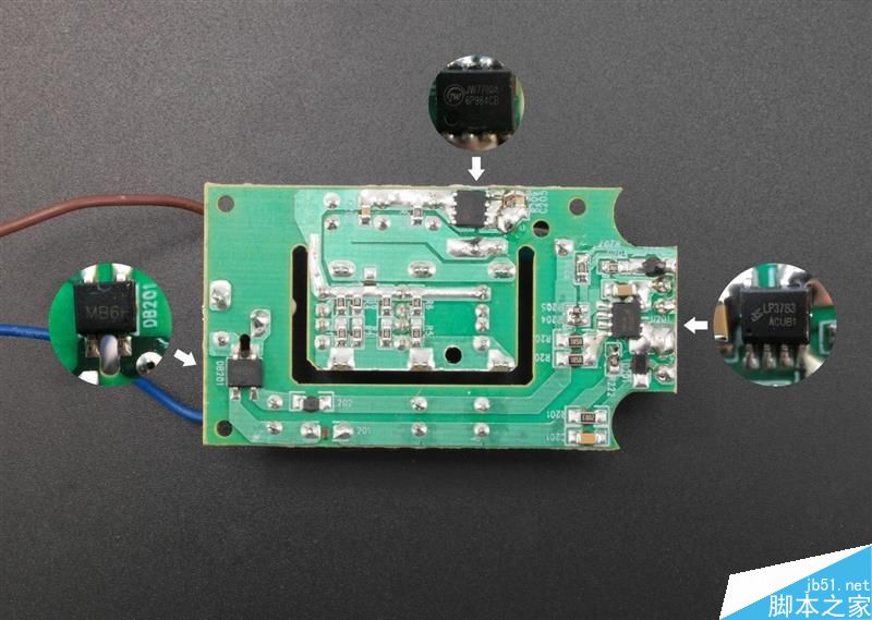 最上方是杰华特JW7700A同步整流芯片,峰值电流可到30A。