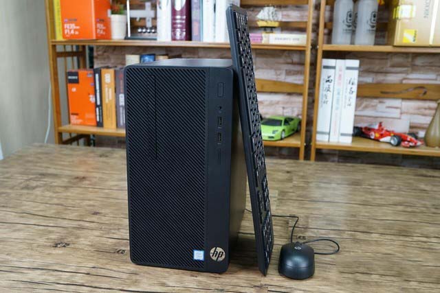 通过与附送的键鼠尺寸对比我们能够看到,惠普战86的机身并不大,但整体的设计风格十分沉稳专业,能够良好适应各种工作环境的装修风格。并且在一些工位狭小的环境下,战86能够占用更小的空间,前面板放置了两个USB3.0接口以及一个3.5mm耳机麦克风二合一接口,可以让用户很方便的接驳需要的设备。