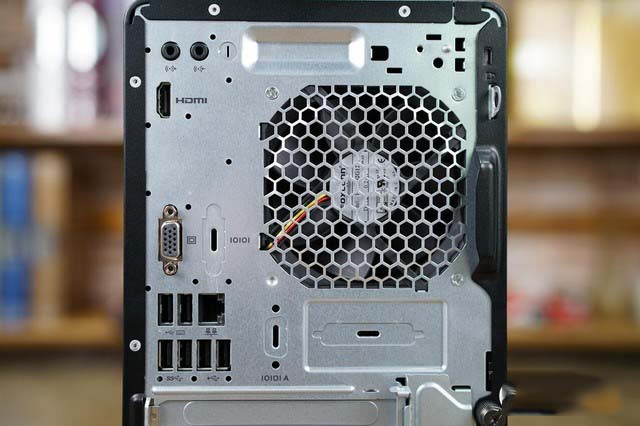 而机身后部则集中了众多常用接口,其中包含了两个音频输入输出接口、一个HDMI接口、一个VGA接口、一个网线接口以及六个USB接口(其中两个为USB3.0),需要接驳更多存储或显示设备时更为方便。