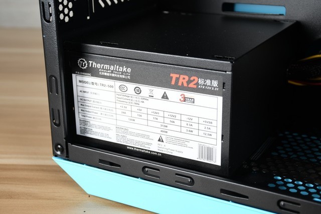 内部预设的硬盘位很充足,SATA扩展接口还是比较充足的,方便用户可后期扩充容量。内部构造也相对清爽,CPU供电线的安装空间并不小,机箱可以收纳背线。这款机器的电源是标准版的TR2电源,足以满足整机的使用。