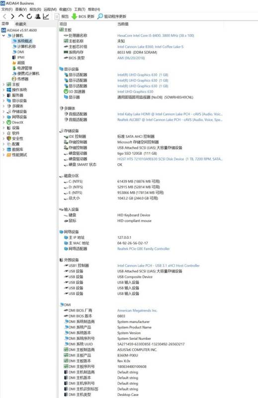 i5-8500拥有3.8GHZ的最大睿频,是Intel最主流的消费级处理器,有着不俗的性能表现。硬盘方面,这块SATA通道的固态硬盘拥有超过468MB/s的持续读取与381MB/s的持续写入速度,满足日常与游戏的性能需要完全不成问题。