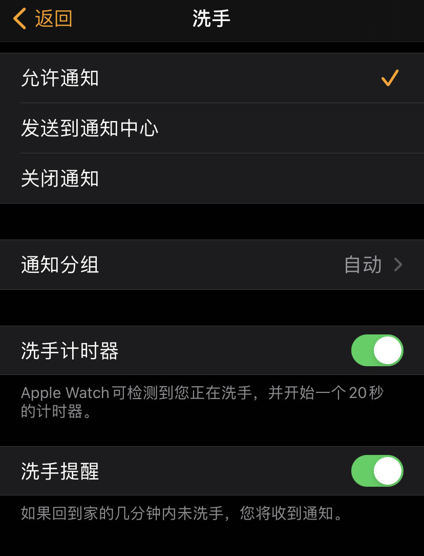 苹果在watchOS 7中为Apple Watch加入了自动洗手检测功能,Apple Watch会根据你的手,传感器和麦克风传来的声音综合判断你是否开始洗手,随后将启动20秒倒数计时器,如果检测到你没达到洗手时间,它会提示您继续洗手。