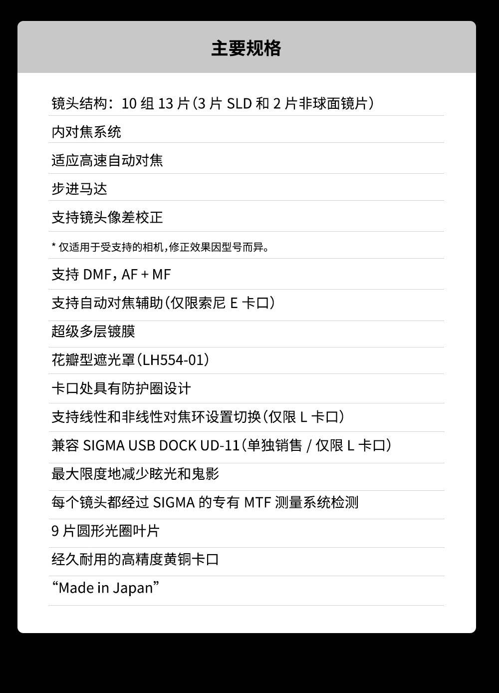 * 使用与 SIGMA CINE LENS(电影镜头)系列相同的工艺