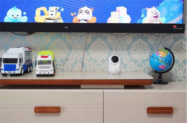 用户可以根据需要选择桌面、墙面或天花板三种安装方式。我将摄像机放在客厅的电视柜上,因为那是我家宝宝活动最频繁的地方。