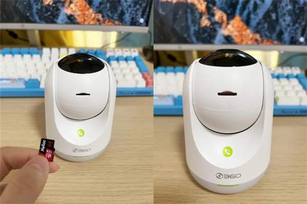 机身正面印有360 Logo,镜头下方可插入TF存储卡(最高支持256GB),云录存储的费用根据服务时长而定,用户可以根据实际需求购买合适的存储服务。