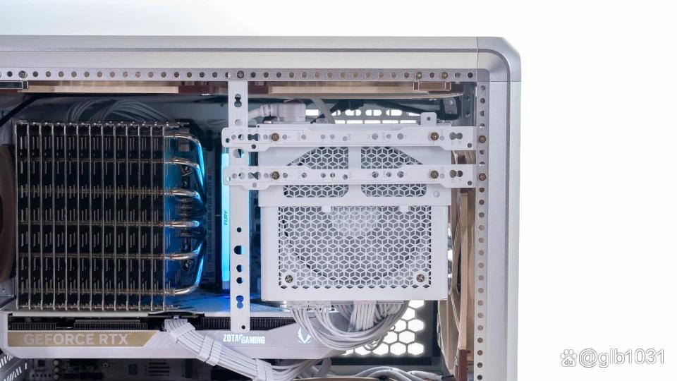 电源改到侧透一侧安装,可以根据电源尺寸调整高度以减少对显卡尺寸的影响。
