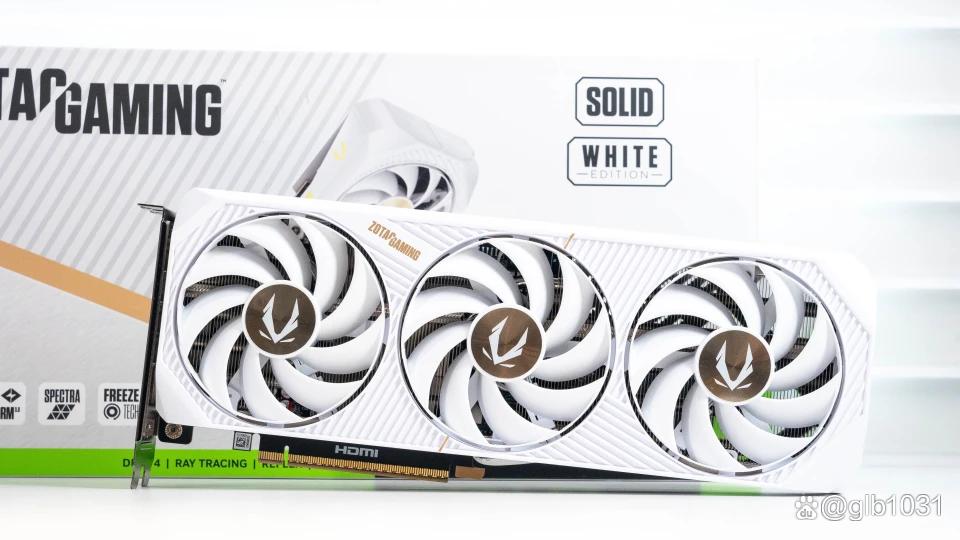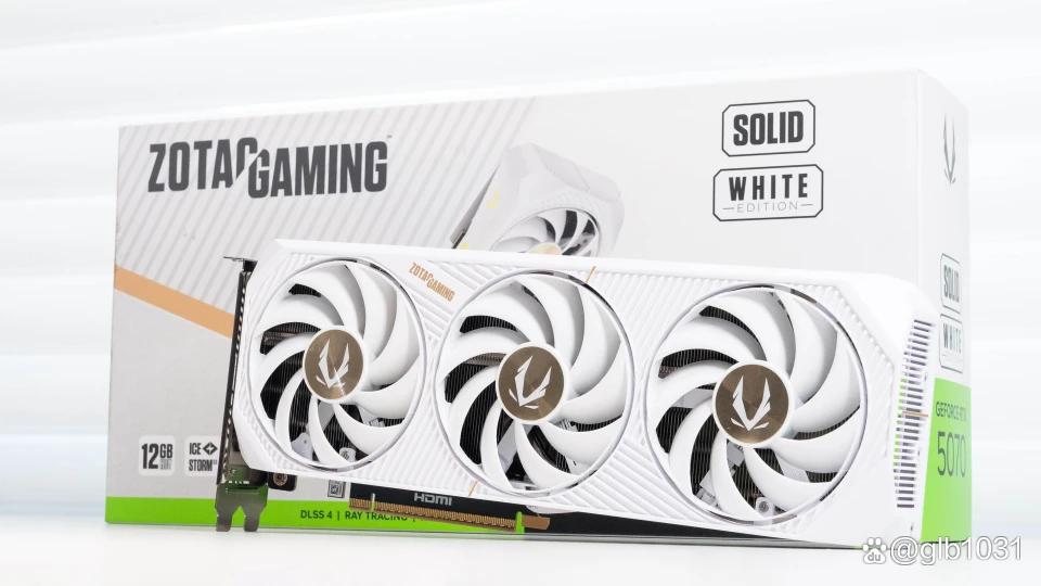 白色的索泰 GEFORCE RTX 5070 SOLID CORE WHITE 显卡采用三风扇设计,30.5*4.3*11.7cm的三围尺寸,双槽厚度的索泰RTX 5070 SOLID可以说是目前一个很好的选择,拥有不错的装机兼容性。
