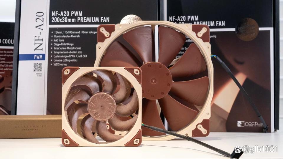 风扇方面因为要选20cm的风扇,所以首先想到了猫头鹰之前推出的NF-A20了。这也是少有的几个直接有20cm的风扇选择了,另外这次还尝试了NF-A20x25 G2 PWM这款12cm旗舰一起。合照下是不是很有压迫感,这次装机也让我终于有机会装这款入手很久的NH-P1被动式散热了。